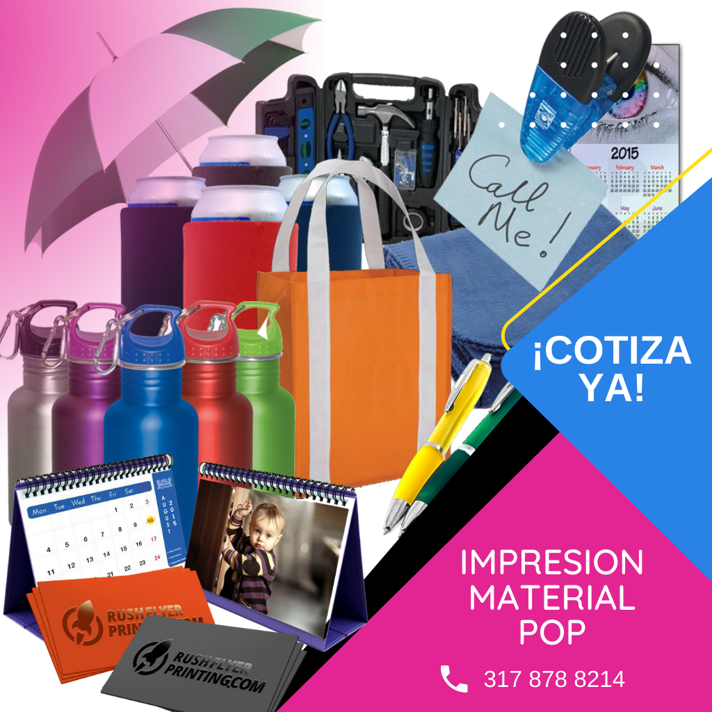 Se refiere a elementos promocionales utilizados en el punto de venta para atraer la atención de los clientes y promover productos o servicios. Incluye displays, exhibidores, carteles y material impreso con diseños llamativos y mensajes persuasivos. Ayuda a aumentar la visibilidad y el impulso de compra en tiendas y eventos comerciales.